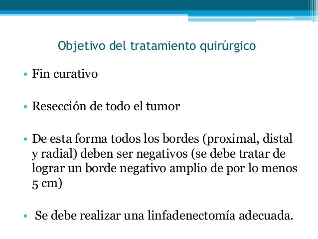 Cirugía para el cáncer de estómago cancer. Se debe enfatizar mucho en asegurarse que el cirujano tenga experiencia en el tratamiento del cáncer de estómago y que pueda llevar a cabo las operaciones más actualizadas para reducir su riesgo de complicaciones. Gastritis causas, síntomas y tratamiento. Dieta para pacientes con gastritis. En pacientes con gastritis se recomienda seguir ciertas pautas dietéticas, evitando el consumo de estas comidas y bebidas que pueden empeorar los síntomas. Actualización tratamiento quirúrgico del cáncer gástrico. Tratamiento quirúrgico del cáncer gástrico a. J. Vázquez medina, f. Ibáñez delgado, j. M. Hernández de la torre y bustillo, f. Alcántara gijón, j. García moreno unidad de cirugía esofagogástrica y tramo digestivo superior. Servicio de cirugía general y aparato digestivo. Hospitales universitarios virgen del rocío. Sevilla. Etiopatogenia pág.149 tratamiento quirúrgico del cáncer. Tal es el caso del cáncer de seno, a juzgar por los interesantes estudios de c. B. Mueller, los cuales demuestran que la rata de mortalidad se ha mantenido constante a través del tiempo a pesar de cualquier esfuerzo terapéutico, y que es una función de la edad y del estado del tumor en el momento del diagnóstico, más que del tipo de tratamiento (22, 23). Cirugía para el cáncer de la vejiga conexion cancer. Cirugía para el cáncer de la vejiga información general el tratamiento óptimo para el cáncer de la vejiga requiere de la participación de distintos médicos, entre ellos, urólogos, oncólogos radiooncólogos. El médico oncólogo es un especialista en el manejo del cáncer y emplea tratamientos anticancerígenos, como la quimioterapia. Tratamiento del cáncer de esófago cancer.Gov. Carcinoma de células escamosas cáncer que se forma en las células escamosas, las células delgadas, planas que revisten el esófago.Este tipo de cáncer se encuentra con mayor frecuencia en la parte superior y media del esófago, pero a veces se presenta en cualquier lugar del esófago. Actualización del diagnóstico y tratamiento del cáncer. Como conclusiones, el tratamiento quirúrgico de la patología tumoral de estómago en un servicio especializado en el hospital rebagliati ha constituido un significativo avance y ha traído incuestionables ventajas como lo demuestran los resultados obtenidos, habiéndonos adecuado así al consenso internacional en relación al manejo quirúrgico del cáncer gástrico en occidente.